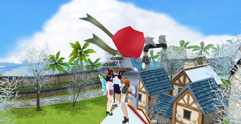 ぱぱに飛んだら、サンタの家のてっぺん!