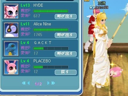 昨日、ペットのGACKTちゃんと、PLACEBOちゃんがLV4にだぼーUPしましたぁ~♪