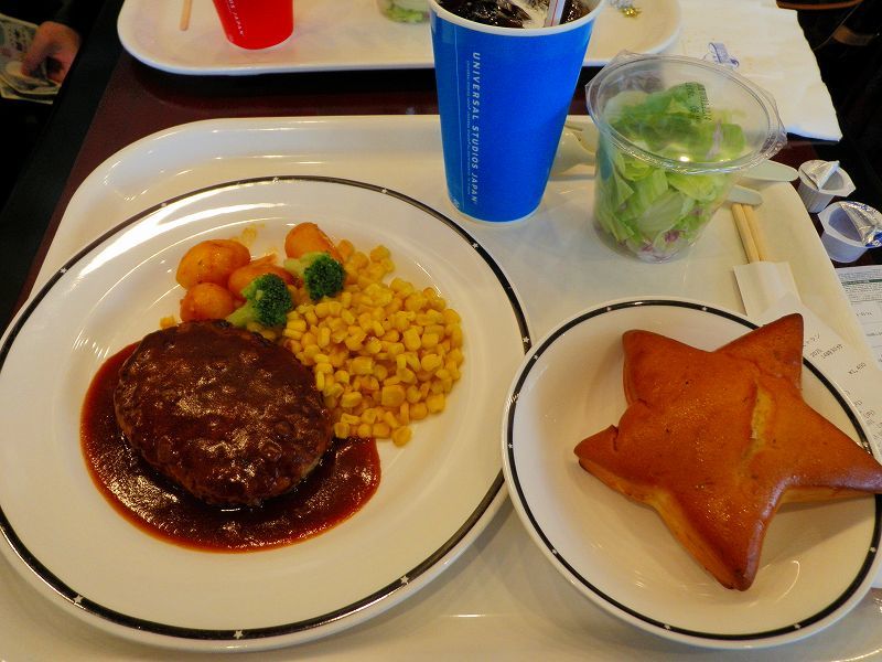 クリスマスメニューじゃなくって、「スタジオ・スターズ・レストラン」の定番料理から「ハンバーグセット」を頼んで食べて(≧▽≦)ゞ
