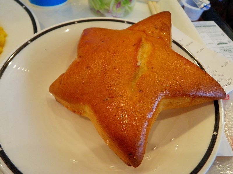 パンは、店名の絡みで「星:★スター型」でしたぁぁ バターブレッドで美味しかったよ(o^─^o)ニコッ