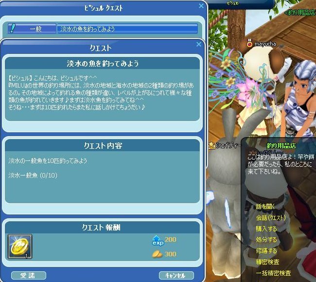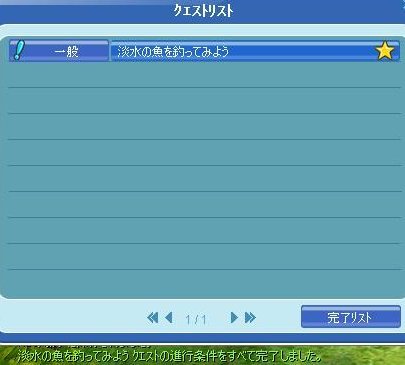 どのぐらいあるんだろうね?ピシュルからはじまり~ 完了すると左下に文字が出て、右のクエストリスト開くと☆がつきます 報酬はプレBOXへ1) 淡水魚 10匹2) ニジマス 1匹3) ニジマス 5匹4) ニジマスを 3匹売る5) ロンバートへ行く6) 海水魚 20匹 7) ホシザメ 10匹 ←今ここw まだまだあるようですネタバレ ホシザメ10匹⇒ピシュ行き⇒黒シャベルの購入⇒掘り1個⇒紫エビ5匹⇒グルテン餌の購入⇒青銅の破片1個⇒青銅の破片5個で終わりらしいです訂正:まだタコ5→20と続くそうです