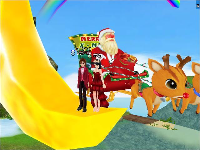 虹から見る月は サンタとトナカイがぐーるぐーる