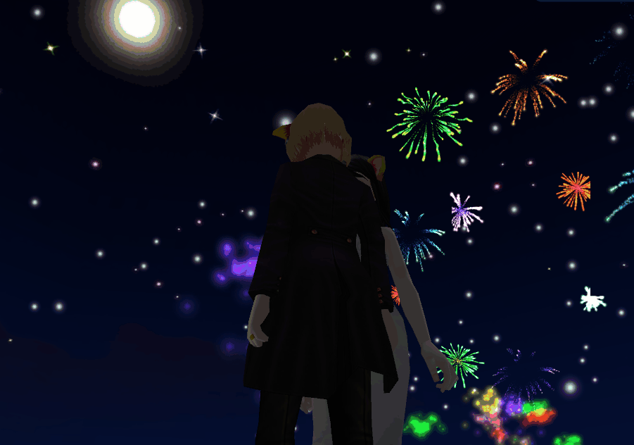すげー綺麗ですね^^とっても、幸せそうなお2人の姿こしの花火♪
