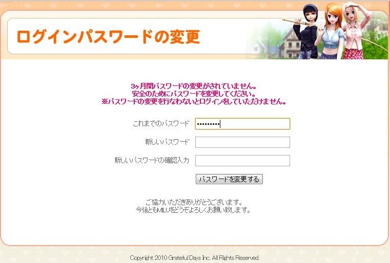 おかげ様で、先程3度目のパスワード更新の画面が現れ