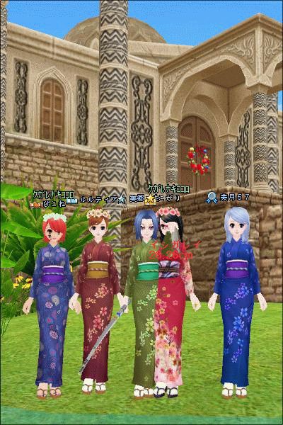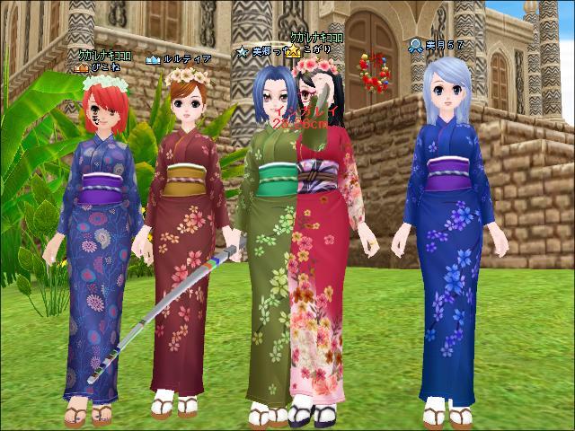 直前に美郷さんがコスプレショップで着物を買ってきてたので、みんなで着物で並びました。