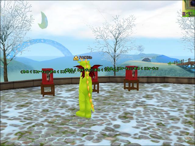 今回のメンテ後にINしてみると、やっぱり門松か立っていたりして、正月を迎える仕様にすっかり変わってました。