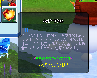 学校を卒業したときに種をくれたり、ボクがLv60になったとき精一杯の贈り物をしてくれたり、錨餌をプレ(念願だったらしい・・・^^;)してくれたり、ボクの方は大した手伝いできてないのに一緒に釣った記憶もあまりないのにいろいろしてくれました。