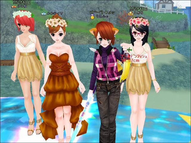 金魚UPをよみして、私とぴこねさんは金ドレスに着替えました。