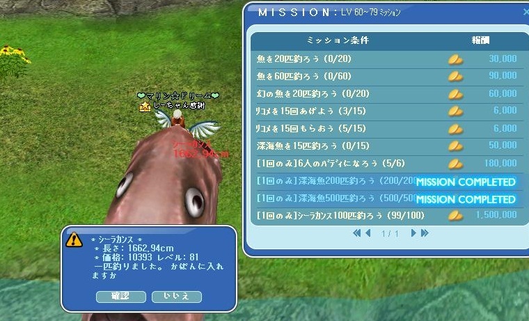 今朝ですが、ついにシーラカンス100匹達成しました^^