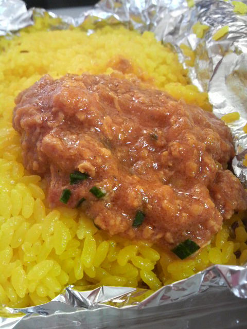 今日はビビって、本当は食べたかった野菜カレーはパスしてキーマカレー(激辛)にしてみました。