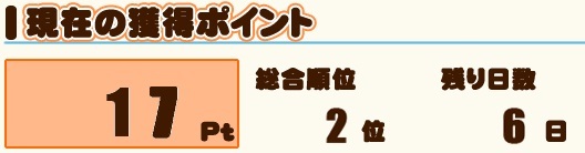 今月のイベ王、先週末時点での成績は