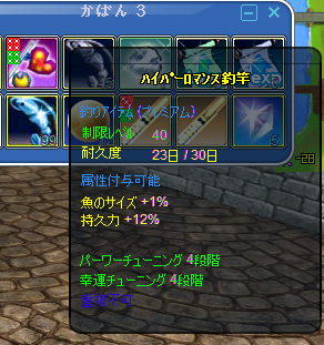 魚のサイズはないけれど、持久力は12%つきました(*^_^*)