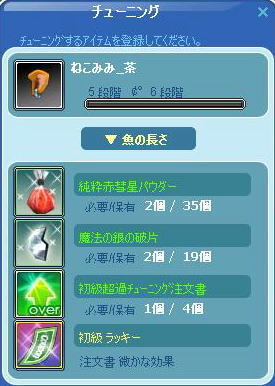 新しくアイテム買ってチューン始めるのも竿作るのも
