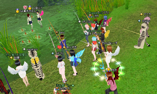 今日初心者応援イベントに参加しました。私は12時7分に着いて説明を聞く暇がなかったのですが、以前参加した物と同じことがわかって、なんとかできまました^^ このイベントは、ニジマスを釣って友達と一緒にSSを撮って、それぞれが、相手のお友達の名前を書き添えてイベントの掲示板の回答といところから、投稿するとイベントが完了になるんです。このイベントは、お友達作りに最適です。初心者の方がいたら是非参加してみて下さいね♪ここで、knori さんと言うお友達ができました。私の知ってる方がいなかったので、お友達をお願いしたんです^^