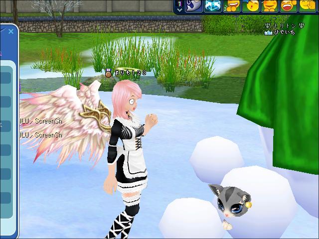 ネコが雪だるまになってしまうじょ^@^ |