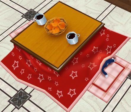 よくみたら、みかんとコーヒーですかねこれ。こたつの上なんて混沌が普通だからありそうだけど、改めてこうセッティングされると違和感がw