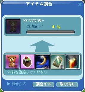 バレンタインボックスから出た、EVラブベアフラワーが耐久切れしたとのメッセージがでたので
