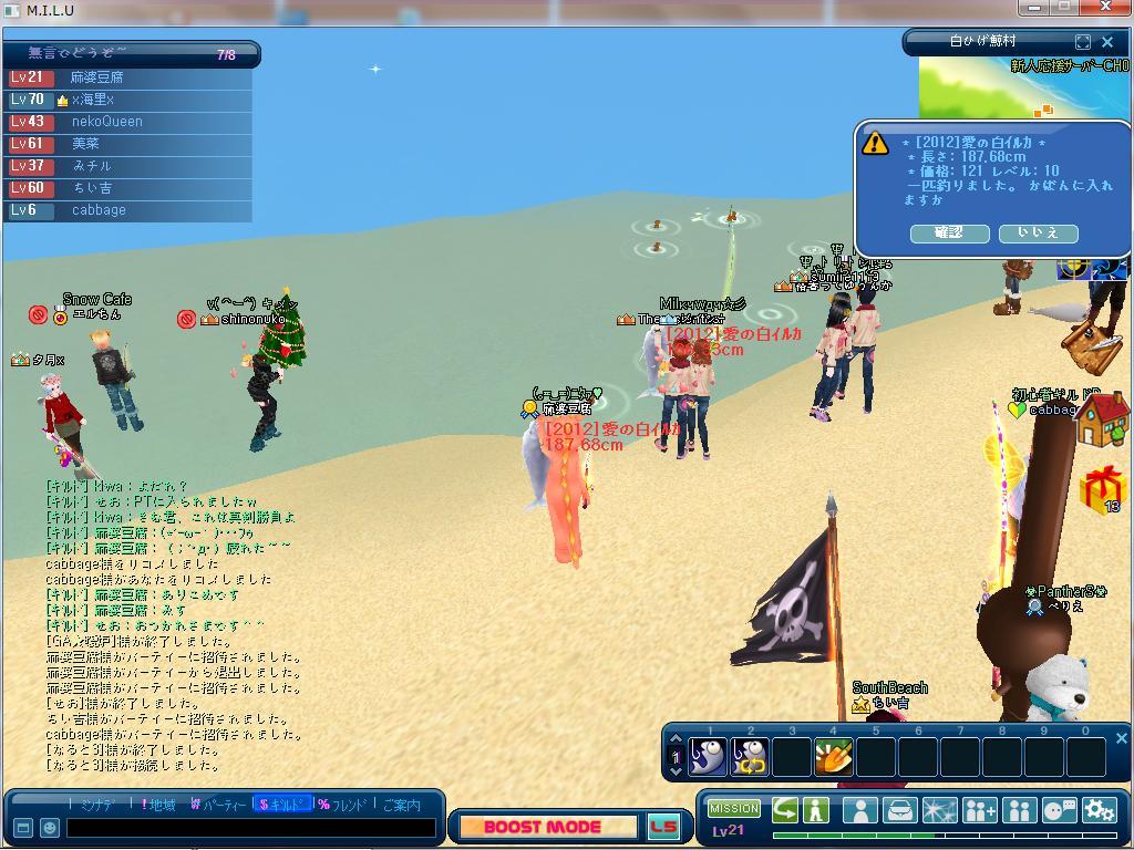 まーちゃん白イルカ釣りに初参加^^イルカさんかわいい^^あっss失敗してしまったwイルカ釣り^楽しいです^^白イルカ釣りがあったらまた参加したいです^^
