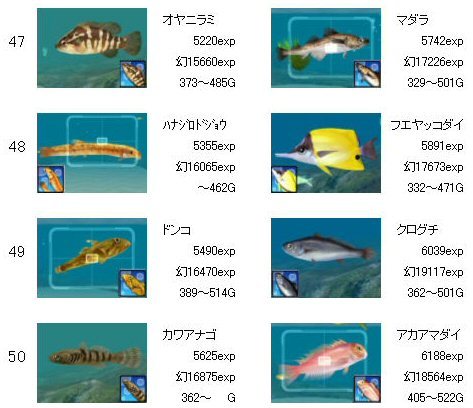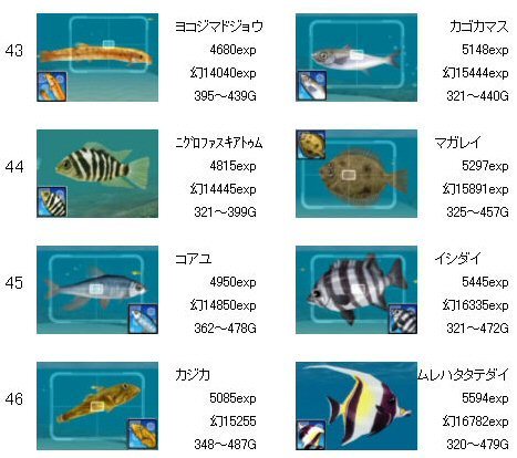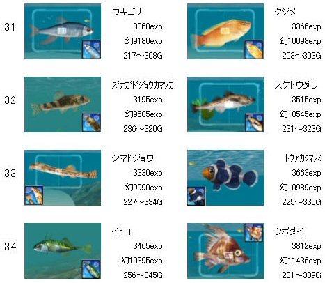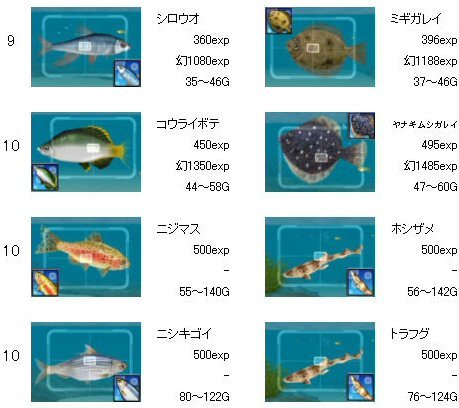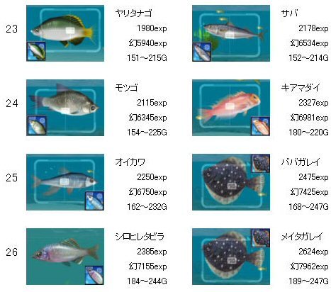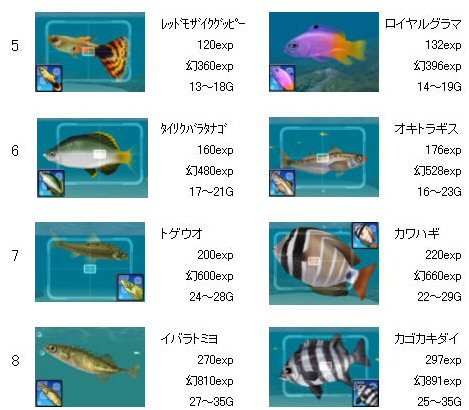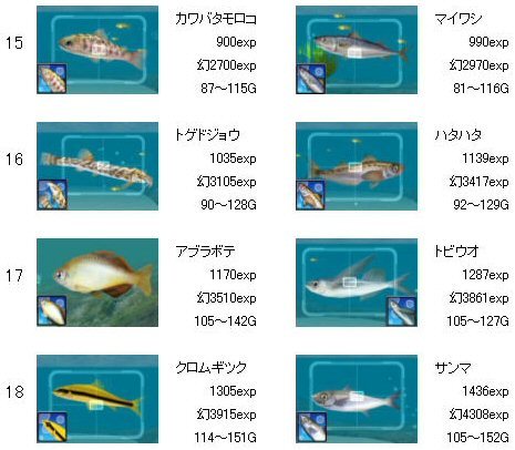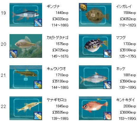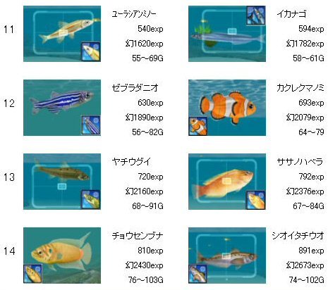 ゴールデンフィッシュ、LV20が追加されています。