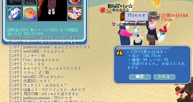 昨日23時から0サーバーで、ゲリライベント『愛の色イルカ限定ぞろ目釣り』イベントがありましたぁ~^^