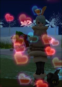 ハートクラッカーがどんな風かみたくて使ってみてアバターに撮ったら、同じころ同じ夜鯖で同じようにクラッカーを使ってアバター撮影中のカップルがいらっしゃったようです。