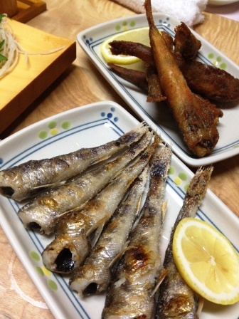 定番メヒカリの唐揚げとこれも珍しい塩焼き