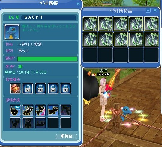 先週金曜日のことですが、ペットのGACKTちゃん、PLACEBOちゃんがLv8にアップしましたぁー!!
