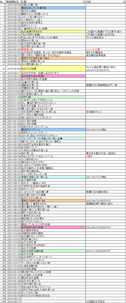 以前からまとめてあったお題一覧だと、まだ98回目です。