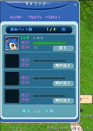 今日、ペットのシエルちゃんがLv8になりました♪