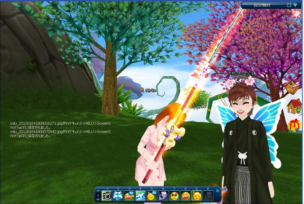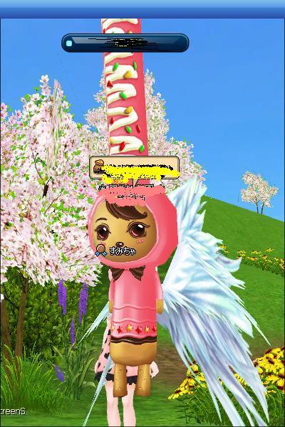 頭の桜の髪飾り^^属性付可に成功ー^^ファンファンありがとうね^^