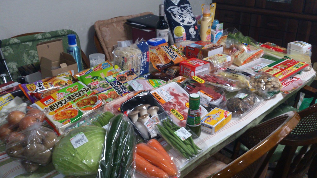 お肉・・・野菜・・・卵・・・ヨーグルト・・・調味料・・・・パン・・・お弁当用の冷凍食品・・・