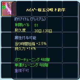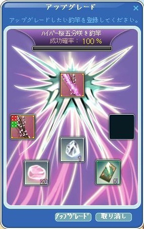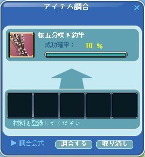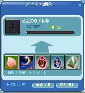 さらにこの後、今回のイベント調合竿、桜五分咲き釣竿調合に挑戦しました。