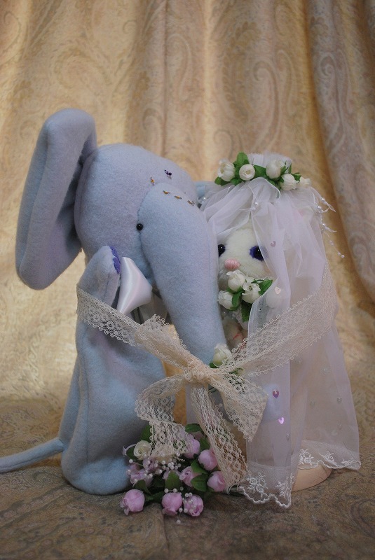 これは友人の結婚祝いに送った猫と象のウエディングドール