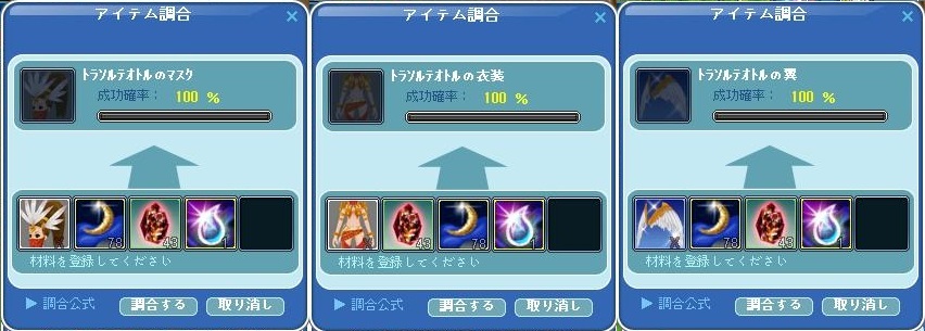 覚悟はしていたし100%成功だけども月のナミダ78×3(234個) 赤結晶43×3(129個)は