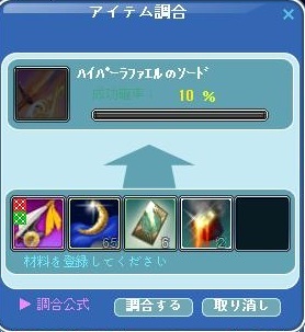 先日、ハイパーホワイトゴットフェザーから、ハイパーラファエルのソードへの調合に挑戦しましたぁーー★