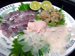 手前右の白いお刺身がカワハギ