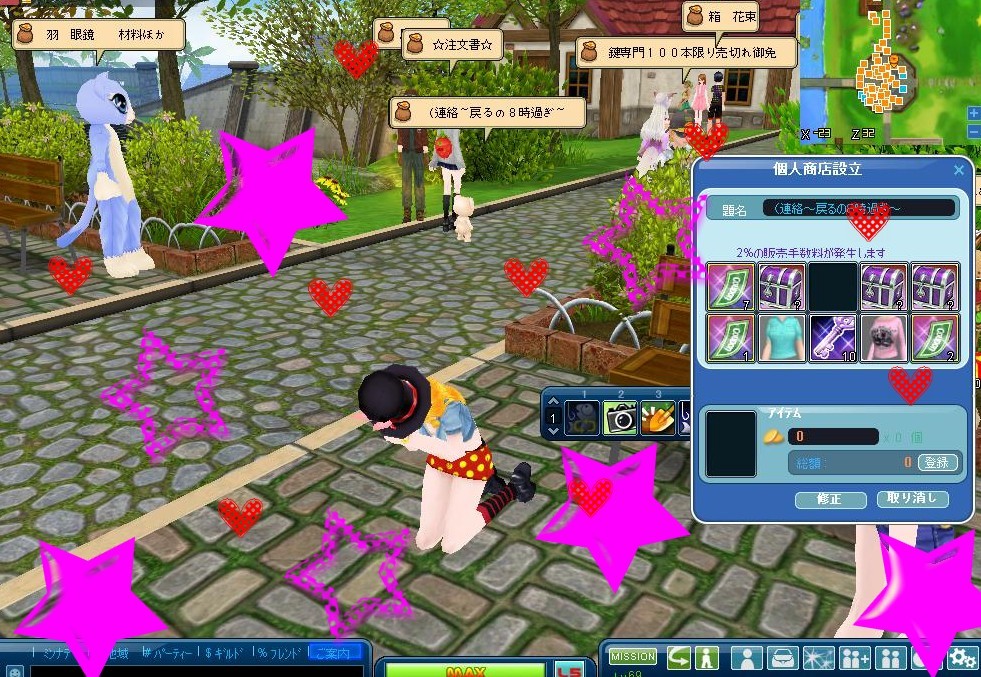 saraに伝えてた時間より、戻りが遅くなりそうで、露店の看板でメッセージしておきました♪