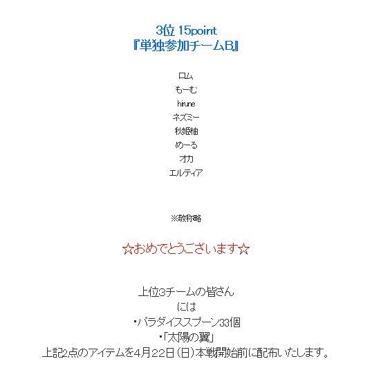 花火とか、UPの光とか…やっぱ、夜鯖が綺麗よね♪綺麗な~おばぁちゃん❤ この後、70セットアイテムフル装備されて…カッチョヨカッタ♪☆★☆★☆★☆★☆★☆★☆★☆★☆★☆★☆★☆★☆ 水曜日だね、また運使っちゃったw昨日、日付けが変わってから…インできた、だーりん❤ 逢えて嬉しかった♪合同イベに、初参戦しとります 本戦に行けるよう(・`ω・)ゞデシッ!! 今日は、なんでもぞろ目で・・ロズリンちゃんと頑張ったぞぉ~!ニジマス2匹&メダカ2匹のぞろ目で、合計8点とったどぉ~~~~( ̄▽ ̄)V いえーい!今宵は、PC前で力尽きたかなぁ、、、神様続く・・(チョット寂しく)w