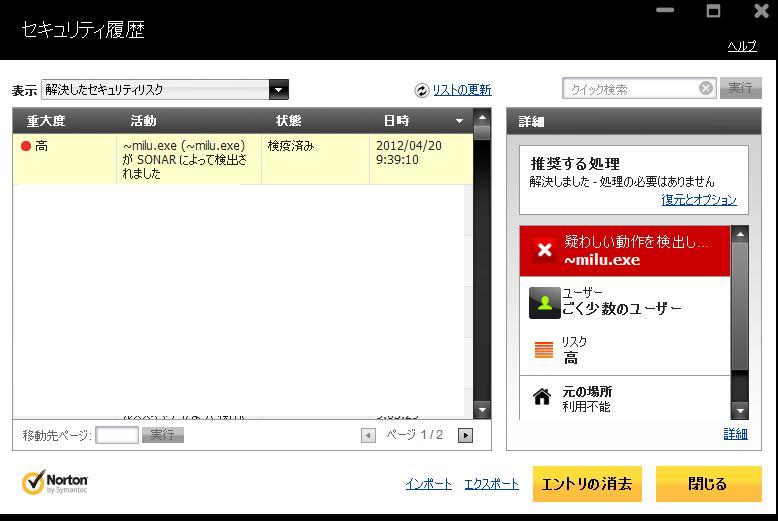 ノートンのセキュリティ履歴でみっけ!