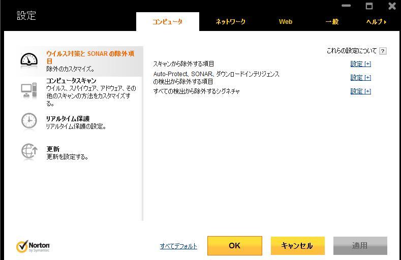 ノートンのSONARの除外項目でMILUを除外するように追加しました