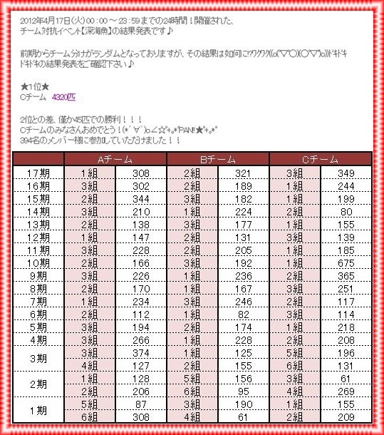 やーーーーーーーっと、対抗戦深海魚の結果出ましたねw