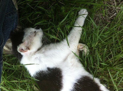 撫でてあげると、ごろんと横になって。僕の靴が枕になってますw