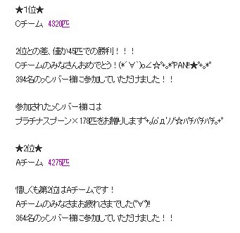 次回のチーム対抗じゃまた組み合わせが変わっちゃうんだろうから