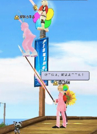 バジーナさんがけにょさんを竿の上にのせたw