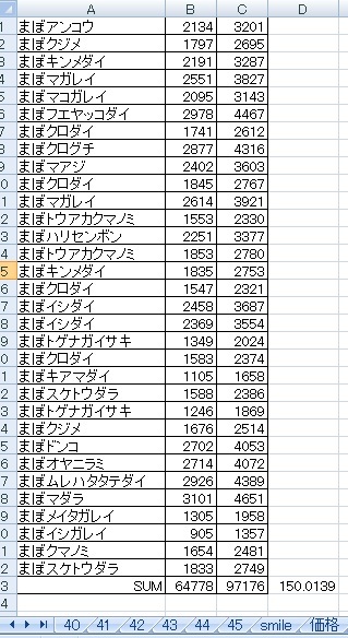 釣ったときに表示された価格(左)と実際の売値(右)