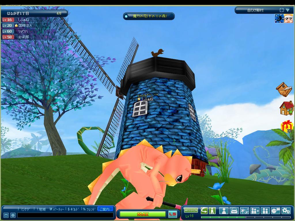 キノコの森で風車をほりほり。