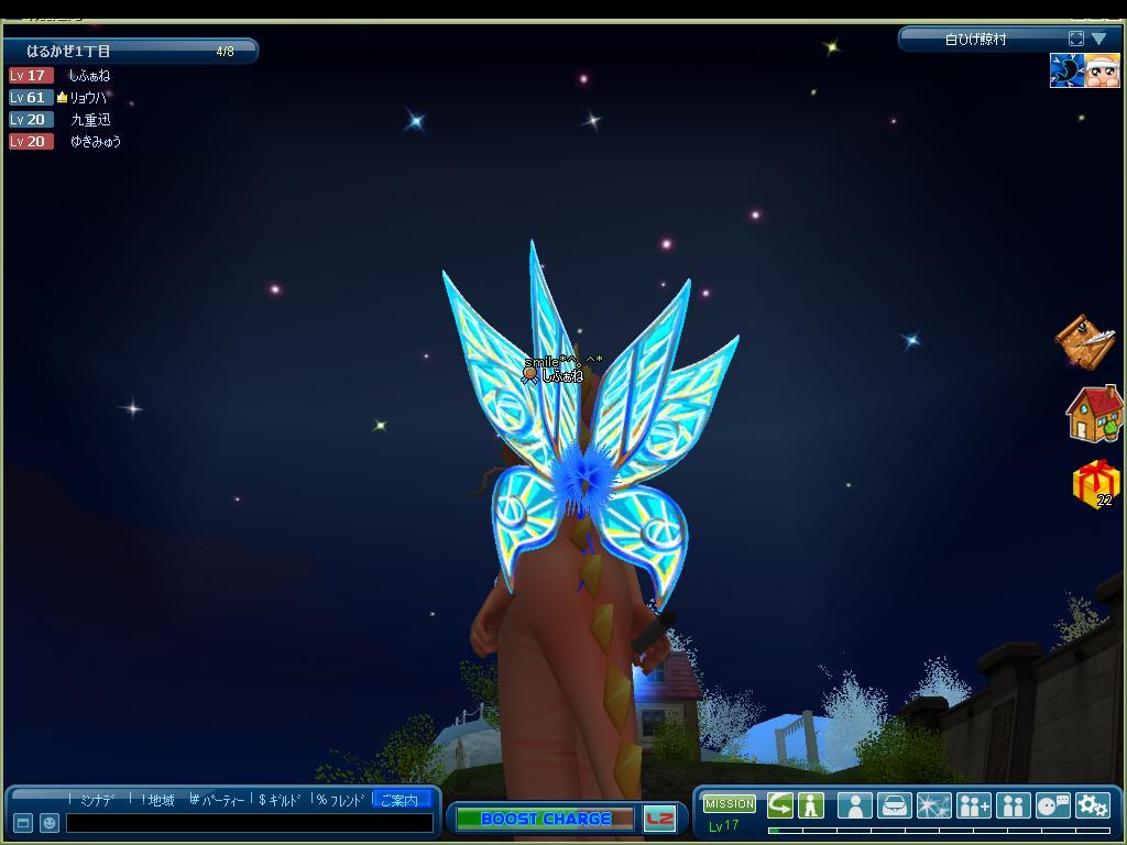 あたしの羽根もけっこう光ってますっていうか、すっごい光ってます。しらなかったよ。