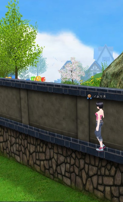 更に、塀の出っ張りに着地する技・・・ 水面歩行