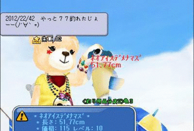 昨日0時過ぎからイベ王3回も行ってるのに77も釣れず><。