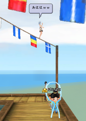 なんてこと無い、ロープの上にいるようにみえるミルトモさん。